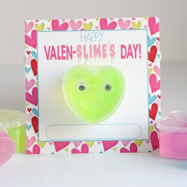 Download this free valentines printable card to give along with some dollar store or homemade slime. There are 4 printable pink, blue, green and red valenslime day cards on zn 8.5x11 sheet of paper. Printing your own valentine cards is very. Click through for 35 adorable valentine card ideas that you can print at home!
